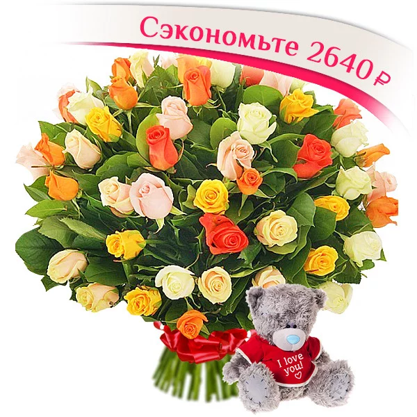 51 роза + мишка